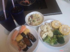 7.2Buffet & Seafood BBQ세율 음식 안녱 Chỗ này Việt Nam cũng có, bên này cũng buffet nhưng đa dạng hơn. Có quầy lẩu tự chọn nguyên liệu, nướng BBQ hải sản, cơm, sushi,... Chè, kem, trái cây đá bào tự làm, nước ngọt, bánh nhỏ cheesecake, nhà hàng này quy định lấy vừa ăn sau khi ăn xong ngta cân đồ còn dư nếu 100g bỏ phí thì phạt khoảng 5 đô. Chỗ bếp có 2 phần, bên trong là lẩu do mình tự chọn, bên ngoài có thể nướng. Quầy nước giống Popeyes đá bên dưới và máy bên trên. Lạ nhất là khoảng tự làm trái cây xiro đá bào. Mấy thứ này bạn có thể ăn không. Đá viên bạn cho vào máy bào đá, tự pha xiro và bỏ trái cây vô, thêm topping nho, thốt nốt tuỳ ý. Đây là những điểm lạ của Seoul Garden tại Sing so với Việt Nam. Bên này để ý thấy cái gì cũng tự làm, ko ai làm giùm cho, ko như bên mình. Nếu không biết bạn có thể hỏi. ...Xem thêm