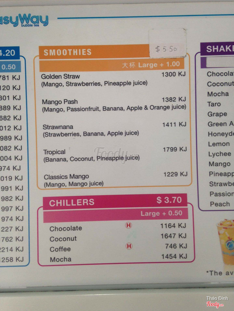 8.0Easy Way Milk TeaĐược con bạn giới thiệu quán này nên hôm nay có qua thử. Quán khá bé, chủ yếu chỉ takeaway và nhân viên chỉ có 1 người, lại ít tiếng tăm so với các quán lớn khác nên cũng vắng. Giá cả mình thấy khá rẻ. Mình gọi 1 jasmine milk tea size L, pudding, pearl và jelly thì chỉ có hơn 5AUD thôi. Mà size L cũng khá to. Topping gọi 3 loại thì nhiều cực luôn đầy ú ụ cả cốc. Dễ đi nhất là đi từ Rundle Mall, qua ngã tư Rundle Mall - King William St 1 đoạn là tới, quán sẽ nằm bên tay phải. Nhân viên làm đồ khá nhanh nhẹn nhé :3 ...Xem thêm
