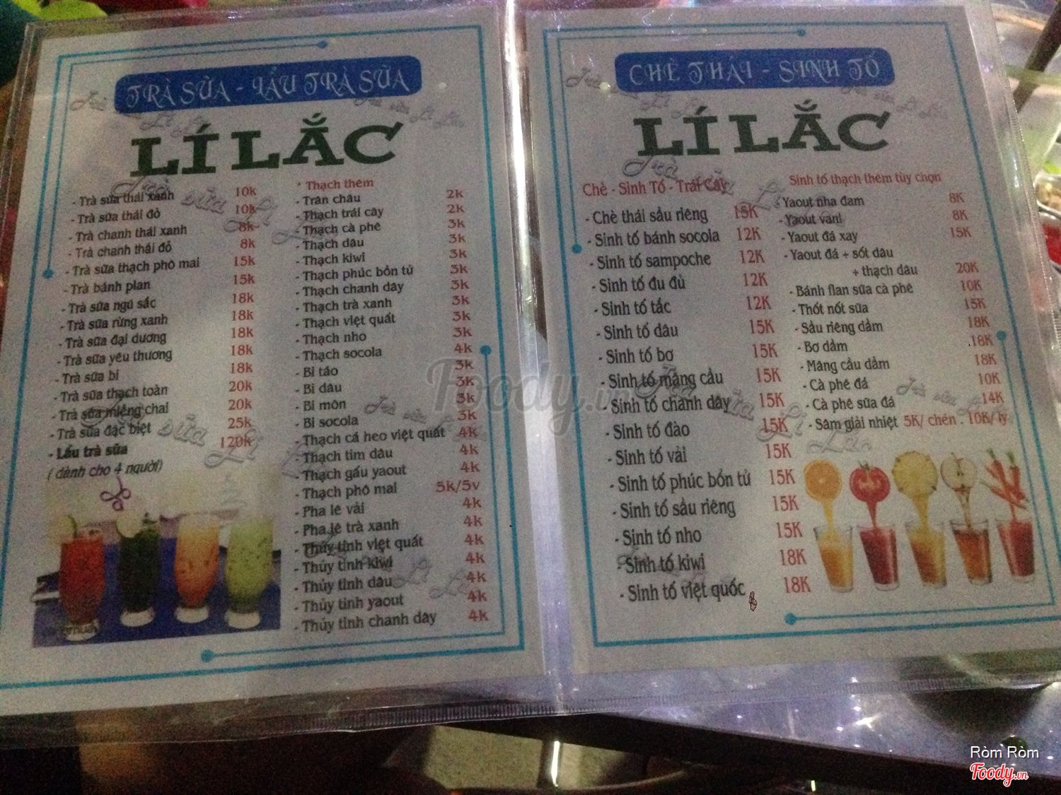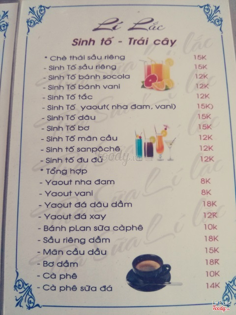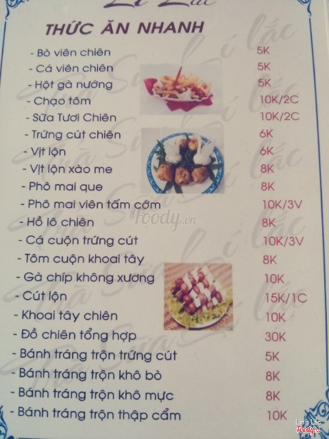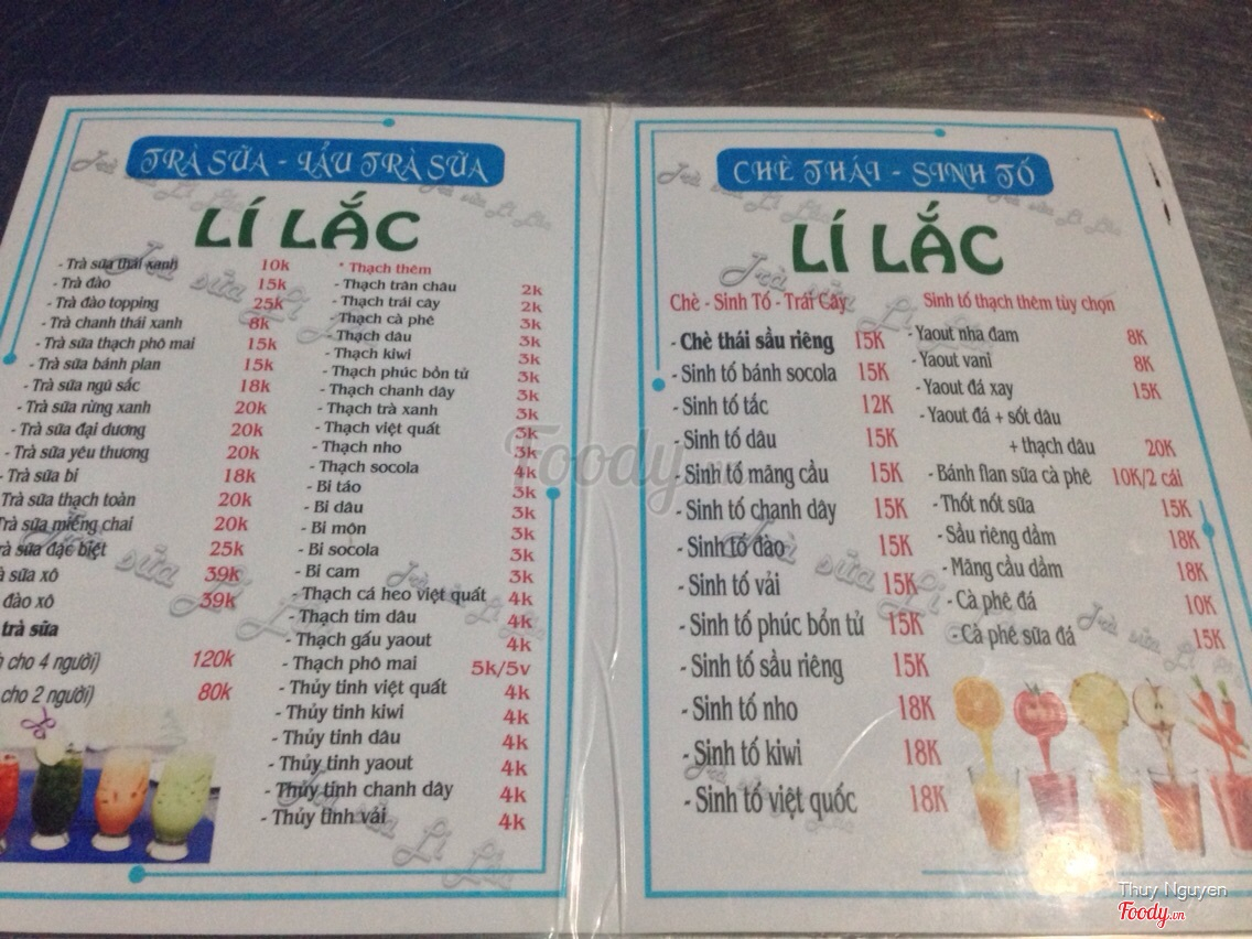 Menu của quán