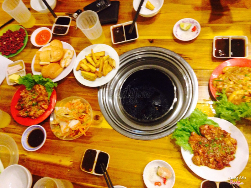 Mình thấy quán này cũng ổn mà k hiểu sao nhiều bạn review cho thấp thế. Quán hướng đến đối tượng sinh viên nhiều hơn nên nhiều lúc cũng không thể yêu cầu quá cao được. 🏣 Quán nằm ngay trên đoạn đê Nông Lâm, có biển rất to và dễ nhìn. 🍵🍵 Đồ ăn ở đây có nướng và lẩu. Hôm nay nhóm mình gọi nướng. Vị tẩm ướt khá ổn, bánh mì bơ nướng là ngon nhất, kim chi kiểu để hơi lâu nên nhìn không đảm bảo cho lắm. Nước chấm cũng vừa phải, ăn tạm được. 🎉 Decor quán khá là ok, giống nhiều quán nướng buffet khác. Nhưng vì quá đông khách mà quá ít quạt nên siêu nóng luôn ấy. 👫 Cũng vì quá đông khách, nên phục vụ hơi chậm, phải gọi nhiều lần cũng mới mang ra được. 💸 Giá cả ở đây khá hợp lý, tốt nhất các bạn nên gọi theo từng món. Tầm từ 20-50k. Còn nếu gọi cả set cả nướng lẫn lẩu là hơn 300k. Lâu lâu ăn ở đây cũng khá ổn, tầm giá sinh viên mà vị cũng tương đối. Tầm 70k/ người. ...Xem thêm