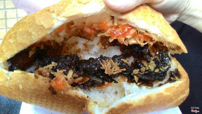 7.2Ăn là ghiềnMình ăn món này từ lúc còn nhỏ, từ hồi có mấy nghìn 1 ổ à, bây giờ thì 10k rồi. Bán từ lúc sáng cho tới chiều khoảng 5g mấy là hết sạch. Đặc trưng của cái xe bán món này là chiếc xe đạp treo toàn đồ chơi, khô bò được đựng trong 1 cái xô nhỏ, hay bán trước cổng mấy trường học, đặc biệt là trường Xuân Diệu với Lê Ngọc Hân :)) Bánh mì nóng giòn, khô bò mặn mặn, sốt tương ớt cay cay ăn vô là ghiền luôn. Mỗi lần ăn là nhớ về tuổi thơ :) ...Xem thêm