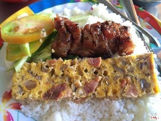 7.4NgonHôm nay mình giới thiệu thêm một trong những quán cơm tấm lâu đời tại Mỹ Tho (có cây bàng trước quán) Nhìn ngoài vào thì không gian hơi chật nhưng mà chất lượng món ăn thì rất ngon. Mình thấy tấm ở đây ngon và thơm, không xỉn màu và sạn như một số chỗ. Sườn chéo ướp ngon, mềm, không quá nhiều mỡ, màu sắc đẹp. Có sườn cốc lết và cả thịt ba rọi nướng. Đặc biệt nhất là chả, có nhiều thớ thịt mềm và nem nếm vừa miệng. Bì cũng nhiều thịt. Ngoài ra còn có lạp xưởng, phá lấu (bao tử và thú linh), phá lấu mềm nhưng hơi nồng mùi ngũ vị hương. Có cả đùi gà nướng. Kèm theo 01 chén súp nuôi. Giá cả update: Chéo chả 25 nghìn, chéo bì chả 28 nghìn, phá lấu ăn thêm 10 nghìn. Tham khảo thêm giá ở hình chụp trong bài. Cơm tấm bán buổi từ sáng đến trưa. ...Xem thêm