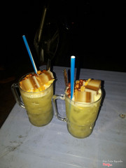 7.2Nước Mía Rau Câu - YersinMình ở SG mới xuống, nghe bảo ở Mỹ Tho nổi tiếng loại nước mía này, chạy đi uống thử. :)) - Quán đối diện hồ, trên đường yersin. - Vừa tới thì thấy quán đông quá. Nên mua đem về. Quán dạng bình dân vỉa hè thôi, nhưng cũng đông khách đấy. - Ly nước mía giá 8k, vừa mở ra thơm mùi sầu riêng, nhưng mình nghỉ chắc là mùi của hương liệu, chứ chả thấy miếng sầu riêng nào trong ly cả. Có cả mít, đậu phộng nguyên hạt, rau câu. Rau câu giòn, có vị nước cốt dừa vs cfê. Uống không ngọt lắm. Nói chung cũng chẳng có gì đặc biệc. Chỉ khác nước mía bình thường là có đậu phộng, mít, rau câu, hương sầu riêng. Thử cho biết vậy thôi. ...Xem thêm