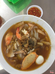 7.6Giá 35k - 45kHôm nay về quê, nội mình rủ đi ăn thử quán bánh canh cua mới mở. Không gian: quán sạch sẽ, rộng rãi, bàn cao dễ ngồi. Món ăn: quán có 2 loại thì phải, nhà mình ăn tô đủ thứ (có cua, chả, giò, tôm, trứng) 45k, mình ăn tô cua và chả thôi thì 35k. Nhìn chung lượng đồ ăn hợp lý với giá cả. Nước lèo ngọt thịt và xương, không quá sệt. Quán có nước chấm mắm me ăn cũng được, hơi ngọt xíu. Có điều theo ý kiến cá nhân mình thì nếu dùng thịt cua càng to chắc ngon hơn thịt que (tại mình ăn ở sg thì ăn thịt càng cua quen rồi chăng^.^) Quán dạng gia đình nên nhìn cũng vui, thái độ phục vụ ok ...Xem thêm