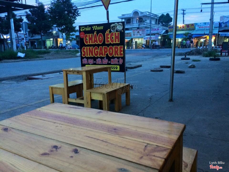 8.2Ngon hú hồn con chồnRì viêu quán Cháo Ếch Singapore TRẦN NAM QUÁN (bên hông Bến xe mới, kế quán cơm tấm An Bình) ngon hú hồn ở P8-TPVL Cháo ếch Singapore chỗ này giống gần 95% cháo ếch Singapore chính hiệu (5% còn lại là đặc trưng của quán). 25k gồm 1 thố ếch kho nức lỗ mũi và 1 tô cháo trắng hương lá dứa. Nói thiệt là đó giờ ko bik ăn cháo trắng mà bik món này là ăn được luôn. Vị nêm nếm rất vừa miệng. Ếch tươi, con nào con nấy cái đùi nó bự như cây cột dậy, thịt rất ngọt luôn. Bưng thố ếch ra sôi ùng ục, có gừng, tiêu, hành nó thơm thì miễn nói rồi. Bưng tô cháo ra là quất liền tay. Mưa này mà ăn cháo ếch là hết bài luôn. Ngoài ra thấy quán có món phở trộn với mì cay. Phở trộn chưa ăn, còn mì cay thì khác với tất cả quán mì cay khác nhen. Thấy mấy quán kia hình như có 1 vị 1 hà, còn chỗ này vị khác, ăn rất đặc biệt mà chỉ ên TRẦN NAM QUÁN mới có. Có lần đi ăn được đốt đèn cầy lãng mạn vãi đạn luôn. Ai chưa ăn thì ghé ăn thử nhen. Thấy 25k/phần cháo mà bao ngon bao no. Anh chủ dễ thương, chị phục vụ đẹp gái lắm nha. Lần nào lại cũng vui vẻ tưởng quen trăm năm rồi á. Ai chưa ăn thì ghé ăn thử nha. Chứ tui là mai mốt j đi ăn à. Ngồi rì viêu mà nước mũi nước dãi chảy lòng thòng luôn. Kkkkkk ...Xem thêm