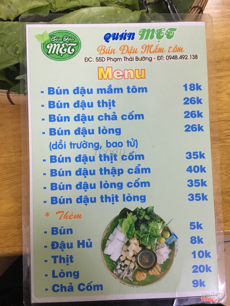 8.0Quán bún đậu mắm tôm đắt khách nhất VLBún đậu mắm tôm Mẹt có vị trí khá dễ tìm, ở đường Phạm Thái Bường, gần trường THPT Vĩnh Long. Menu đơn giản vừa đủ , nhưng lúc nào cũng đông khách là do đâu? - Mắm tôm đã qua nêm nếm lại phù hợp hơn với khẩu vị miền Tây, khi bưng ra mắm tôm lúc nào cũng nóng hổi vừa thổi vừa ăn :)) phù hợp cho mấy bạn team bụng yếu luôn nhen. - Thịt , lòng chế biến sạch sẽ tươm tất , không nghe mùi tanh , chắc chắn sẽ làm hài lòng những vị khách khó tính nhất về khoảng vệ sinh an toàn thực phẩm 👍🏻 . Chả cốm thì bên ngoài giòn bên trong dẻo mềm , cắn vào như tan chảy luôn. Bạn nào ngấy thịt thì recommend chả cốm nhe! - Đậu hủ phải nói là nóng hổi, rán giòn đều tắp lự , bày lên mâm nhìn vàng ươm vô cùng đẹp mắt, nhiều lúc ăn phải cẩn thận bỏng cả lưỡi ))) -Rau tươi , sạch sẽ Menu nước thì đơn giản các món trà chanh , nước ngọt, nhưng đặc biệt là nước sấu Hà Nội (theo mùa mới có) món này nên thử lắm nhe mng 👍🏻 Phục vụ : mấy bạn học sinh - sinh viên thái độ cực kỳ lịch sự , chắc chủ quán cũng training kỹ lắm , phải nói là không có gì phàn nàn dc luôn. Đặc biệt là anh trông xe, lịch sự dịu dàng niềm nở không như những quán khác. 💯 Giá cả : hợp lý ...Xem thêm
