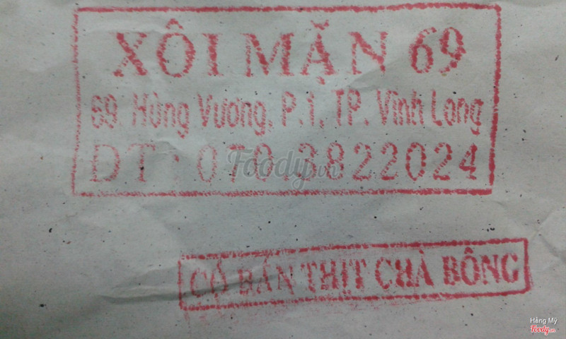 8.6Xôi Mặn 69 - Hưng Đạo VươngTiệm xôi nằm cách ngã tư hưng đạo vương và nguyễn thị minh khai khoảng 20m. Buổi sáng đông nghẹt khách, nên muốn ăn bạn phải đến sớm nếu không sẽ đợi hơi lâu tý. Xôi khá ngon, vị nếp ăn vào sẽ cảm nhận vị ngọt thanh nên không ngán, xôi nấu không quá khô không quá nhão nên rất ngon, thêm vào đó chà bông do tiệm tự làm nên ăn chung với xôi rất hợp khẩu vị , có hột vịt, lạp xưởng và cả đậu phộng nữa. Giá cả lại khá rẻ chỉ10k một gói. Bác chủ ở đây phục vụ nhanh nhưng mà đông khách sẽ khó tánh và chửi nên cẩn thận nhe. Tuy vậy nhưng ai cũng thích ghé mua vì xôi ngon nên xôi ở đây còn gọi là "xôi ông chửi" ...Xem thêm
