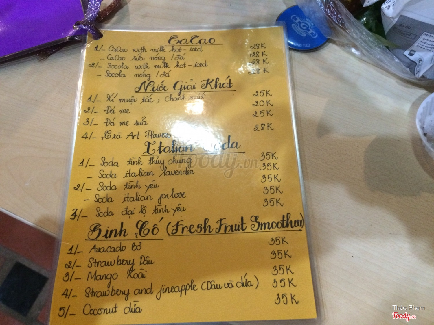Ghi chú đặt bàn