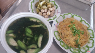 Cơm niêu, thịt ba chỉ luộc, cá kho, canh cua đồng, tép rang khế chua, cà pháo mắm tôm...