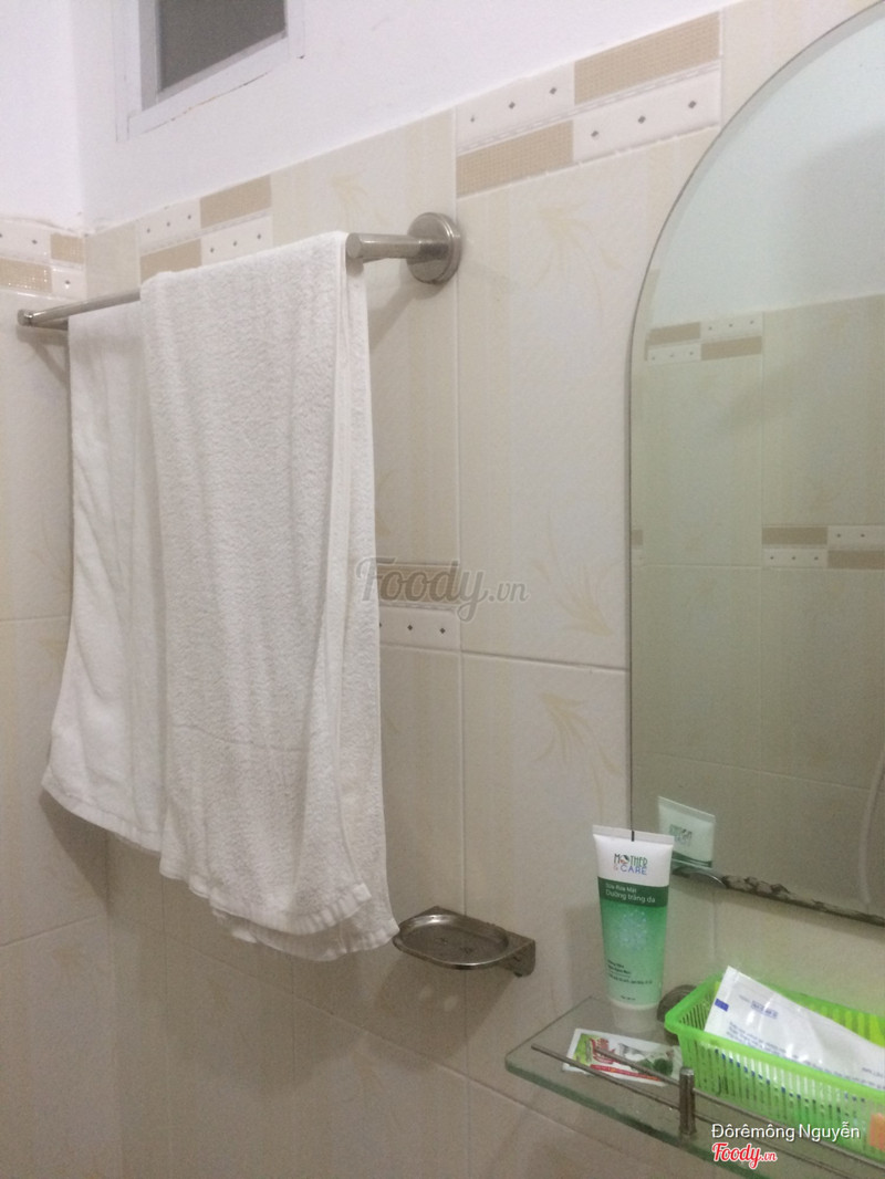 6.8Cũng ổn ổnKhách sạn khá bình dân, phù hợp cho những chuyến đi ngắn ngày và có xe (hoặc có thể thuê xe) do từ trung tâm vào khá xa. Thấy map thì đi ra Bãi Sau cũng gần như vô trung tâm tp đồ đi cũng khoảng 10-15p bằng xe. Xung quanh có quán ăn sáng, ăn trưa nhưng giá ko đc rẻ lắm. Mình ở 1 ngày và thêm 6 tiếng, 1 ngày phòng 2 cửa sổ ở tầng 2 giá là 220k ngày thường (thứ 5), sang thứ 6 do bạn mình bận việc nên báo lại ks ở thêm 6 tiếng (tính tiền 1 tiếng thêm 20k). Lúc tới thì cũng 10h30 rồi, khá trễ do bị lạc đường nên hỏi còn phòng ko, phòng book sẵn chú mắt kém nên hỏi mình book phòng như nào rồi đưa phòng này luôn, mình có nói thẳng là phòng 220k. Khách sạn cũng nhiều tầng, có thang máy nên tiện. Nội thất các tầng có giấy dán tường sạch sẽ, phòng mình gần thang máy, lan can và cho hẳn phòng 2 cửa sổ nên lúc đầu cứ sợ chú lộn )) phòng có máy lạnh + quạt, nhìn khá sạch, tiện nghi và đẹp nhờ 2 cửa nên view nhìn thoáng mắt, sáng sủa. Cửa ra vào có 2 chốt, 1 chốt an toàn và 1 chốt 2 lần khóa, có lỗ nhìn ra ngoài nữa cũng tiện. Phòng hơi nhỏ, toalet cũng vậy nhưng khá đầy đủ, có máy nc nóng nhưng vặn ngược so với các vòi chỗ khác )) Phòng có tủ gỗ, tủ nhỏ để điện thoại, tv màn hình phẳng mạng mạnh, net; wifi free, điện thoại trong phòng, tủ lạnh mini, nước uống (nước suối + nc ngọt); dầu gội, xà bông tắm, bàn chải, dép đi trong nhà & khăn... dép nhìn ko sạch lắm nên cũng ko mang. Cách âm cảm giác ko tốt lắm, quạt tiếng kêu è è khó ngủ, phía trên cửa ra vào có ô chữ nhật trong trong nên cũng hơi sợ, cảm giác ko kín đáo lắm )) còn lại nhìn chung ổn, ks cũng cho thuê xe máy nữa. ...Xem thêm