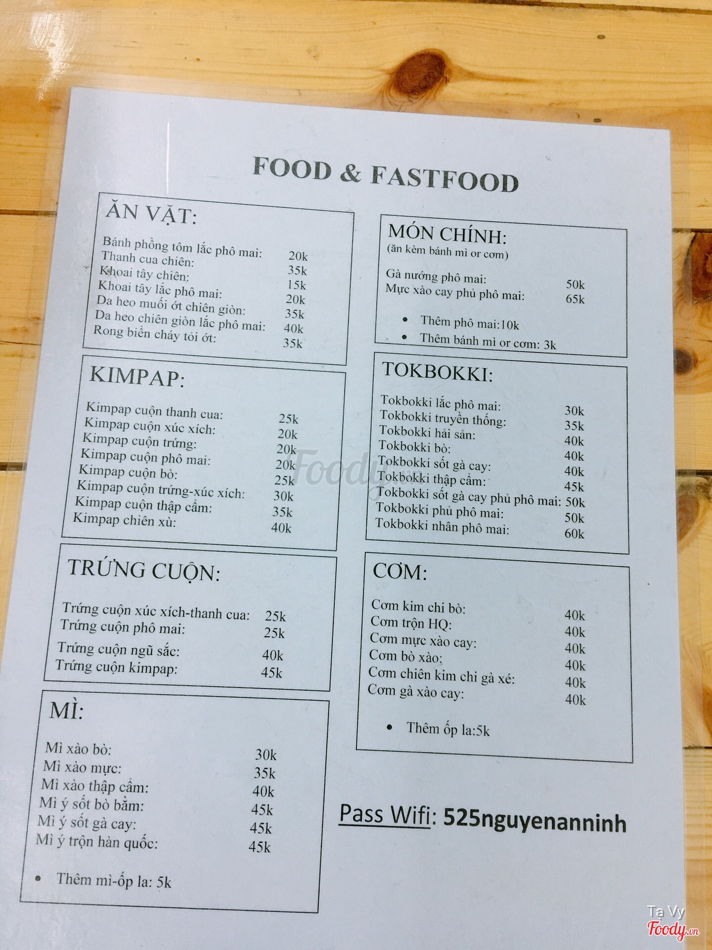 Ghi chú đặt bàn