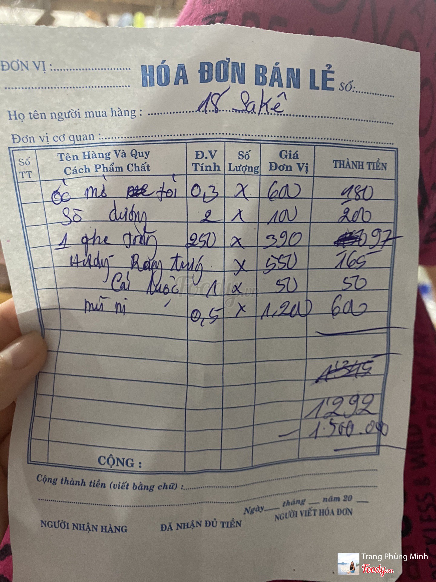 Ghi chú đặt bàn