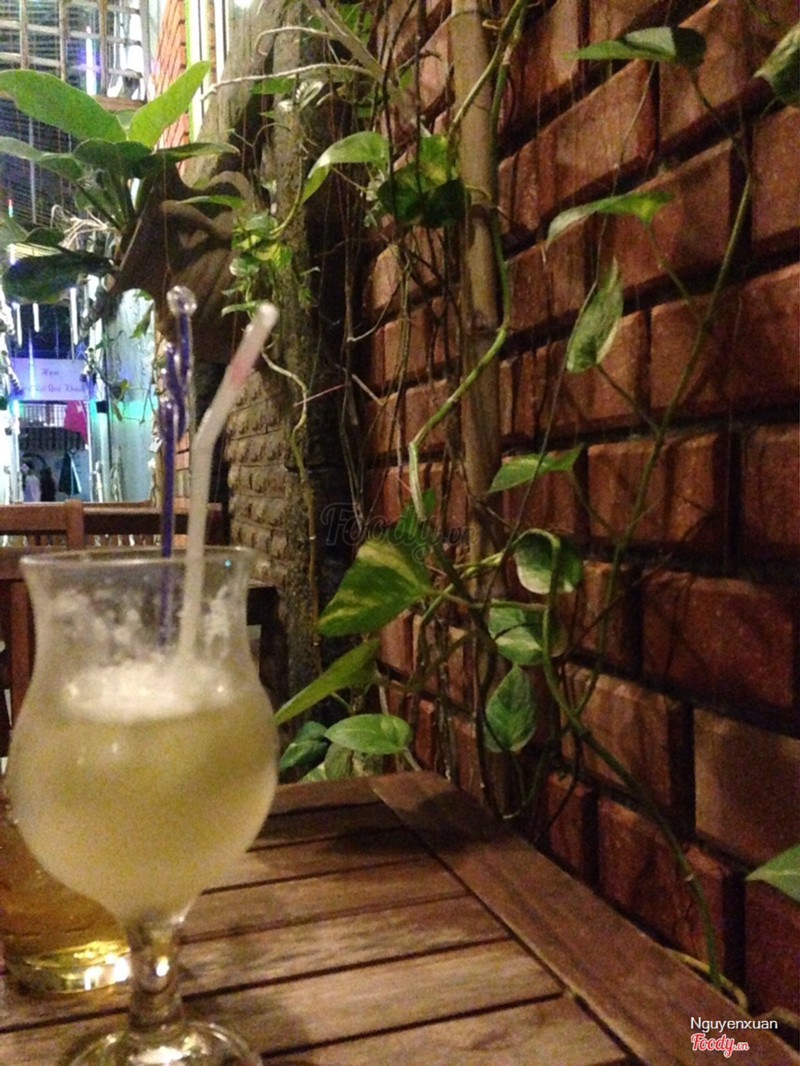 6.8View đẹpTình cờ biết quán này thôi, đi ngang nhiều lần nhưng vì quán lọt thỏm trong con ngõ nhỏ nên chẳng biết đến sự tồn tại của nó. Từ ngoài đường ồn ào bước vào đây như thế giới khác, nước róc rách, nhạc du dương hoà vào thiên nhiên làm tâm hồn thoải mái vô cùng. Quán có phong cách riêng, đồ uống đặt trong các chai lọ thuỷ tinh, thắt nơ ngay miệng chai trông xinh xắn. Các loại thức uống xay uống cũng ổn. Bữa mình thử vị việt quất thấy lạ và thơm lắm. Giá ổn, dao động từ 15-30k tuỳ loại. Có phòng lạnh hoặc bàn ngoài trời. Nhân viên nhanh nhẹn, niềm nở ^^ ...Xem thêm