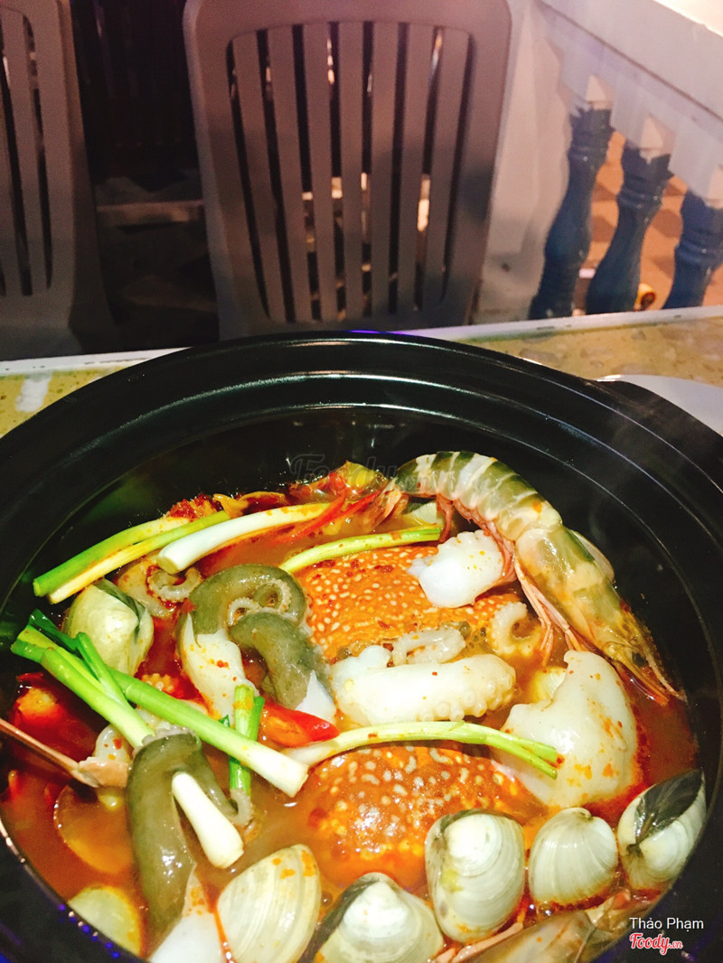 7.6Quán có view biển đẹp và không gian siêu lãng mạn cho coupleMình hay đi dạo biển nên đi ngang qua quán vài lần cái thấy ngay khách sạn mới mở thêm quán ăn về hải sản đồng giá chỉ 36k/ dĩa đặc biệt ở quán có món lẩu ghẹ kim chi cay lạ lạ. Hôm nay mới có dịp vào quán để ăn thử: Mình đi theo nhóm nên gọi xả láng luôn - 1 dĩa ốc hương hấp xả - 1 dĩa bạch tuộc nướng muối ớt - 1 nồi ngêu hấp xả - 1 dĩa 5 con hào nướng mỡ hành to đùng chỉ 36k - 1 lẩu ghẹ kim chi chua cay Theo nhận xét của mình thì hải sản cực kì tươi ngon mà rẻ nữa, như dĩa ốc hương ở trên í chỉ có 36k thôi mà quá trời rồi, lẩu thì chua cay ăn khỏi chê luôn, 1 nồi có 2 con ghẹ thêm 1 dĩa bạch tuộc, tôm hến ngêu... dĩa rau nhiều ú ụ kèm theo nấm và kim chi tươi kiểu hàn quốc ăn max ngon, có dịp mấy bạn ghé thử nha ...Xem thêm