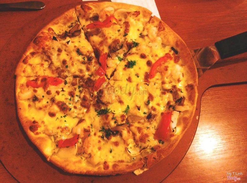 7.6GoodPizza ở đây rất ngon . chắc có lẽ vì lần đầu ăn một cái pizza chính hiệu thực thụ nên đã lắm . lớp phô mai phía trên làm cho cái bánh càng ăn ghiền . Do ăn đế vừa nên 3 cái đã no . Lần sau sẽ ghé lại ăn đế mỏng . kkkk ...Xem thêm