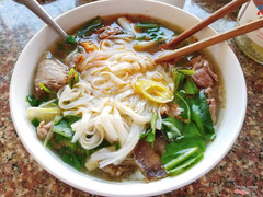 7.0Quán Phở Quyền 2Quán nằm gần cuối đường Trương Công Định hướng ra phía bãi trước, mặt tiền đường rộng nên dễ kiếm quán. Quán bán từ sớm, hầu hết là phục vụ học sinh sinh viên, người lớn tuổi. Thoạt nhìn quán có vẻ bình dân nhưng rất sạch sẽ, muỗng đũa, lọ gia vị được che đậy rất kĩ, rau rửa rất sạch. Vì mang đậm hương vị phở Bắc nên nước dùng cũng không ngọt như phở miền Nam, sợi phở ở đây sử dụng loại phở sợi to. Nước dùng nghe chủ quán chia sẻ là nước dùng hầm xương bò và thịt nạm, hầm nguyên đêm, bản thân mình cũng thấy nước rất thơm, ngọt, ko gắt vị bột ngọt. Mình thích tái gân ở đây nên vào gọi hẳn tô tái gân đặc biệt, thịt bò tái mềm, trụng tái vừa, gân giòn giòn sật sật nhai thích lắm, đảm bảo gân bò chỉ bán trong ngày, không để qua đêm nên không bị thâm. Tổng thiệt hại cho 1 tô phở đầy ụ đặc biệt, 1 chén hột gà là 45k. Qúa no nê và dinh dưỡng cho 1 bữa sáng tràn đầy năng lượng. ...Xem thêm