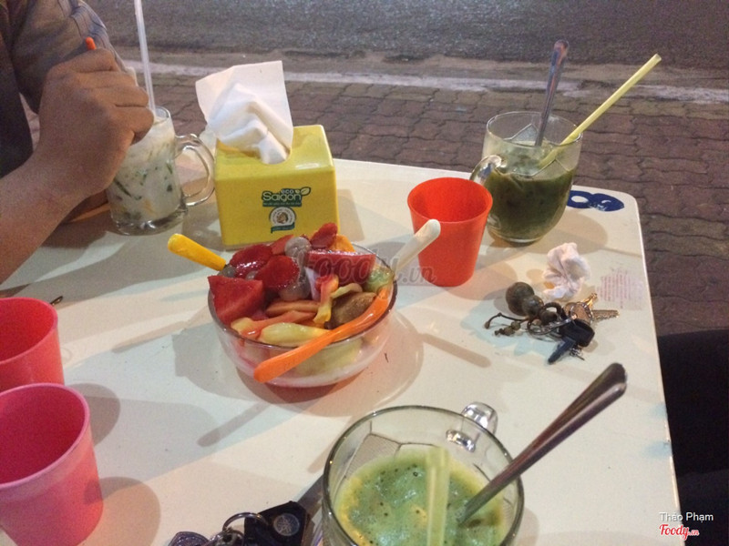8.0Bình thường quán :)Đêm quá khuya khát nước nên phi vào quán ngồi, bạn mình gọi sinh tố bơ sầu riêng mình gọi ép cóc thơm. Không biết ly bạn mình nó thấy sao nó uống cũng gần hết, ly của mình thì do mình lo nói nhiều quá ly nước ép nó chia làm 2 tầng luôn nhìn cũng vui phết. Mình cũng khuấy lên kéo một hơi cho đã và cảm giác thật toẹt vời ép cóc không có nước đường, chua vật vã luôn haha đảm bảo là hôm qua mình đã đủ vitamin C cho cơ thể. Đang ngồi thì hết vé số rồi người già neo đơn, người buôn bán nhỏ đi qua mời chào đủ các món trên đời, làm cuộc nói chuyện của mình bị hẫng 2 3 lần và mình với bạn mỗi người 1 bịch sing-gum mang về. Điểm cộng sinh tố chất lừ, không gian thoáng, điểm trừ lỗi kĩ thuật không đáng có của sản phẩm (ly nước ép), và quên chụp hình rồi nhưng ngồi ở quán thứ khiến mình quan tâm nhất không phải là sinh tố của quán mà là biển hiệu của tiệm đối diện thật là có nội dung độc đáo :) ...Xem thêm