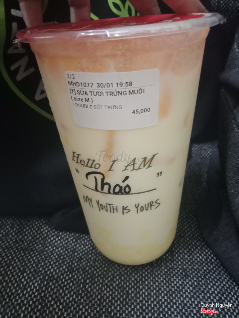 10Sữa tươi trứng muối rất ngonMình order sữa tươi trứng muối double sốt trứng, uống thấy ngon và nhiều sốt. Trứng muối có chỗ hơi lợn cợn nhưng mình thì hay nhai nên cũng không thấy phiền lắm. Sốt ngọt, thơm, uống với sữa vừa phải. Từ lần sau chắc mình cứ order món này. ...Xem thêm