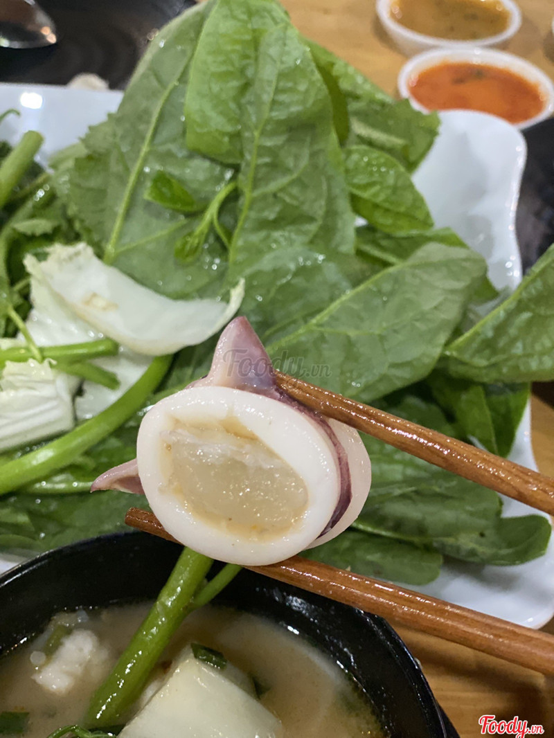 9.4Lẩu mực nấu chao ngon nha- Mình đi 2 người (mùng 6 tết), giá tết nên hơi mắc. - Mình gọi 3 món: LẨU MỰC NẤU CHAO "hot hit" của quán, vào quán sẽ được nhân viên giới thiệu món này vì là đặc trưng của quán, lẩu chao nhưng ko mặn nha, vị ngọt thanh vừa miệng lắm, mực nhiều và tươi, khoai môn chiên chín sẵn nên đem nấu lẩu mau mềm ngon lắm, rau cũng nhiều loại, tươi và ngon, mình thấy menu có nhiều món lẩu mực khác nữa, lần sau lên VT ghé thử cho hết. HÀU NƯỚNG giá đắt quá 35k - 45k/con, hàu múp, tươi ngon. CỒI SÒ ĐIỆP bán theo cân kg (ko tính vỏ), có thể gọi 100g, 200g hay nhiêu cũng được, chế biến 3 kiểu: cháy tỏi, xào mỡ hành, xào bơ cay; mình oder 200g xào bơ cay ngon thần sầu, 200g ko tính vỏ nên ăn đã cái nư lắm ah nhe, giá tết 419k/kg, 200g hết 83k nhe. - Quán thoáng mát, gió thổi bay cây dù, bay cái ghế của chú bảo vệ luôn. - Nhân viên nhiệt tình, lên đồ ăn nhanh, quán ngon nhưng khá vắng khách, mình nghĩ do giá hơi cao. ...Xem thêm