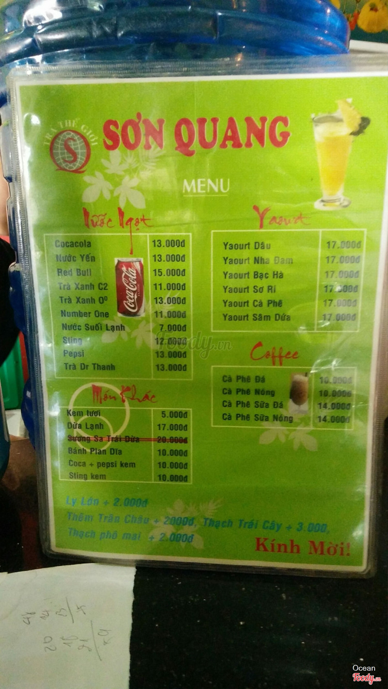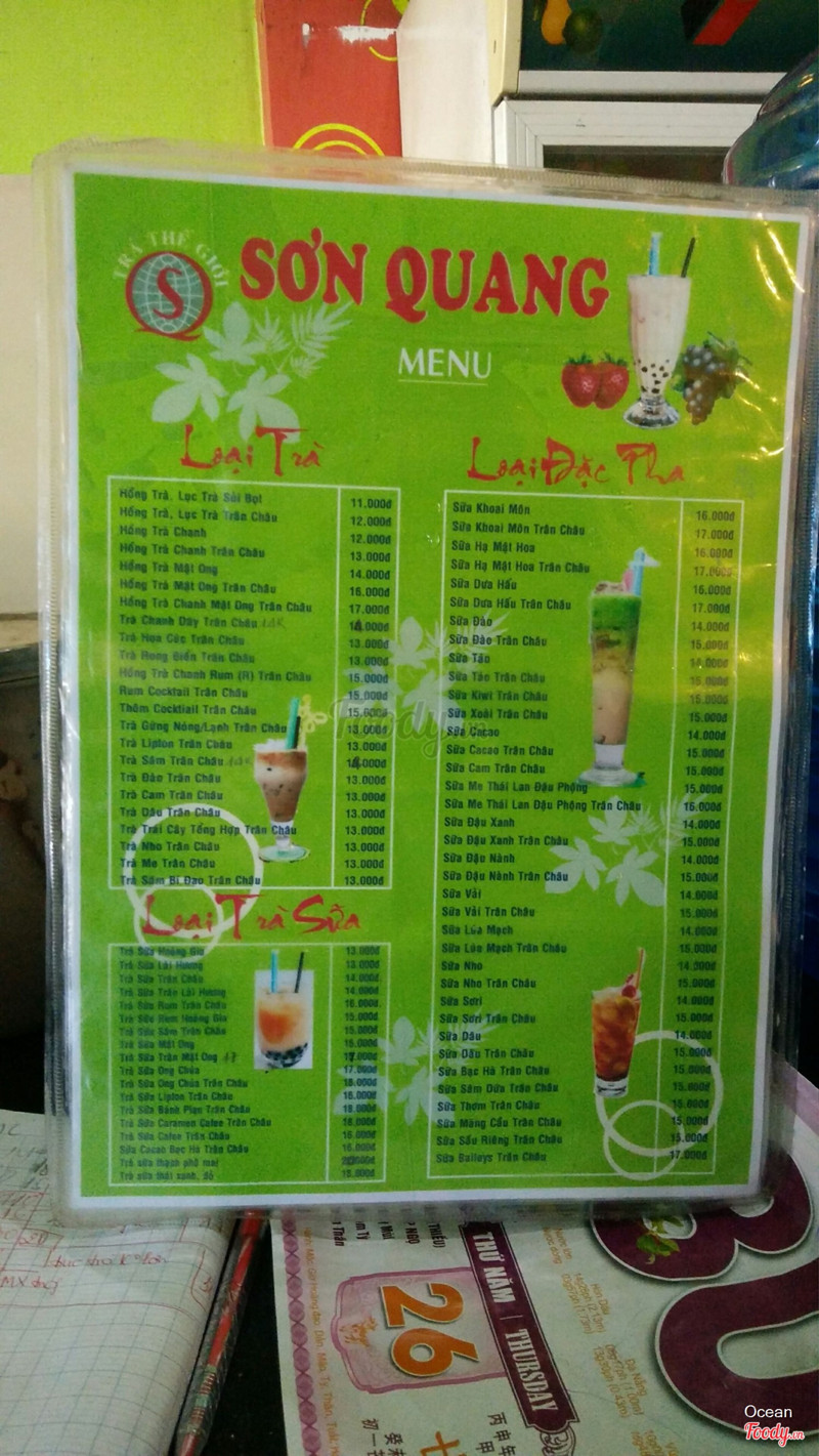 6.8Trà Sữa Sơn Quang - Nguyễn Văn CừNgày lễ xuống vũng tàu chơi được bạn là dân vũng tàu dẫn đi uống nước. 2 đứa, 1 đứa gọi trà sữa thái xanh, 1 đứa gọi trà chanh. Mình uống thấy bình thường, không ngon không dở, giá cả cũng tạm. Quán này nghe cũng cũ rồi, từ cái thời bạn mình học c2 (giờ là đại học năm 3) nên vô quán thấy bàn ghế, tường đầy vết bút xóa, chữ bla bla viết từ thời trẻ trâu giống như hồi xưa nên thấy cũng vui vui, coi như là nét đặc sắc của quán. ...Xem thêm