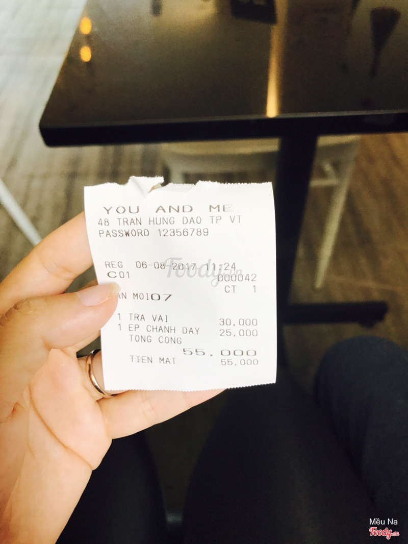 8.8You and Me Coffee*vị trí : ngay mặt đường luôn nè . khá là dễ tìm. Nổi bật với tông màu trắng đen và chữ you and me. Hôm đó mình đi 3 người. Không biết có gì sai sai không . haha *giá cả : cũng như các quán khác thôi. Giá cả ổn * chất lượng : mình có gọi sữa chua xoài. Mình thích xoài nên có xoài đều ngon hết á ^^ *dịch vụ: được cái nhân viên cũng nhanh nhẹn cẩn thân. *không gian quán khá rộng và thoáng mât . sạch sẽ. Nhưng nhà vệ sinh thì chỉ có ở tầng 1 . ...Xem thêm